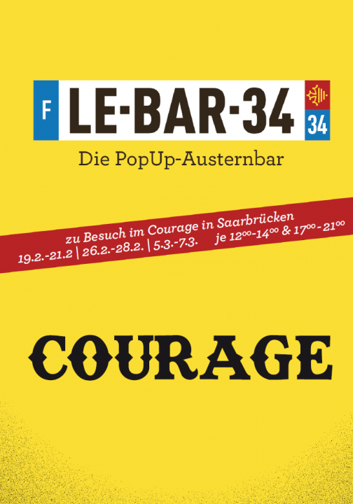 Wir folgen ab Donnerstag dem 19.2. der Einladung des Courage in Saarbrücken, das zwischen dem „Terminus“ und dem alten „Fruits de mer“ liegt, gegenüber der Garage.